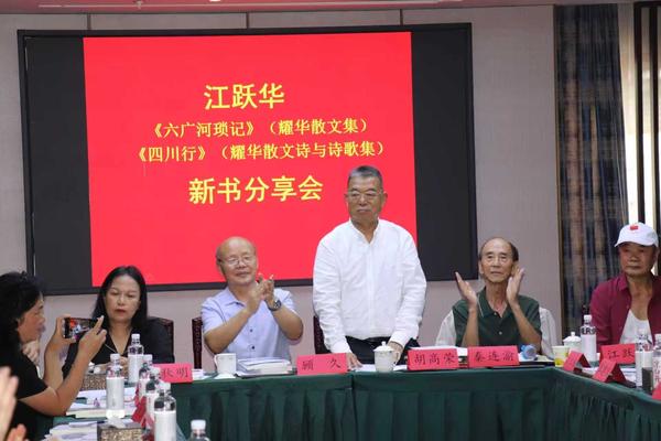 贵阳市王阳明法治研究会会长胡光胤先生作分享会总结 近几年来的多次采风作品,成就了本次出版的两本新书。散文集《六广河琐忆》,为什么选这篇作为书名?原因主要是:六广是我的乡愁,衣胞之地,虽然已离开40多年,仍然有许多深深的各种记忆。再则,六广河大峡谷经过开发和宣传,既有桂林漓江之秀,又有长江三峡之险,有了较大的知名度。作品的写出,情景熟悉,没参考任何资料,全凭记忆和自己的亲身经历创作。文中有好几处写得精彩:如第三部分的最后,描述一起在公社工作的同学孟琴,穿红色上衣,在河沙坝捡鹅卵石,形象比喻“百亩沙坝一点红”;第四部分中央电视台摄制组,来修文拍电视剧《西游记》选外景,作为六广本地人,分管县长安排我当向导,全程陪同,与著名导演杨洁结识,她平易近人,很有亲和力,留下良好印象,经反复考察,最终选定贾家洞以上宽阔的河面,作为沙僧出场的拍摄场地;第五部分记忆最深,刻骨铭心。那是陪同县长王向规到移民库区调研,在宝寨公社任支书家吃早饭;炒有鸡肉、腊肉等菜,大米饭。当吃完一碗准备添饭时,任支书站起来哽咽着说:大家吃的腊肉和鸡,还有大米,都是他一早起来去别人家借的。向规县长结合考察时看到的情况,当即回答:自己是孤儿出身,库区群众生活困难,是我们的工作没有做好,回去后一定及时向省、地领导如实反映,尽快解决。写这篇散文,还源于贵阳市作协、县文联组织的采风活动,坐汽艇游览六广河;后又参加县委、县政府召开的“知青看修文”恳谈会,听著名作家叶辛发言,说六广河还有深度开发的价值,受到启发。散文写成,有关平台推出后,时任县委宣传部常务副部长贾长远看到,给予较高评价,称赞我为“修文少有的文化人”。